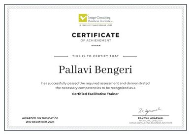 I am Pallavi Bengeri, an Image Consultant, NLP Practitioner and life coach, Personal branding expert, facilitative trainer & Voice trainer. I have trained under Image Consulting Business Institute (ICBI), a pioneer in India and the biggest brand in the world of Image Consulting and Soft Skill Training space. I have been certified by IBHNLP (Indian Board of Hypnosis And Neuro Linguistic Programming) as NLP Practitioner and a life coach.